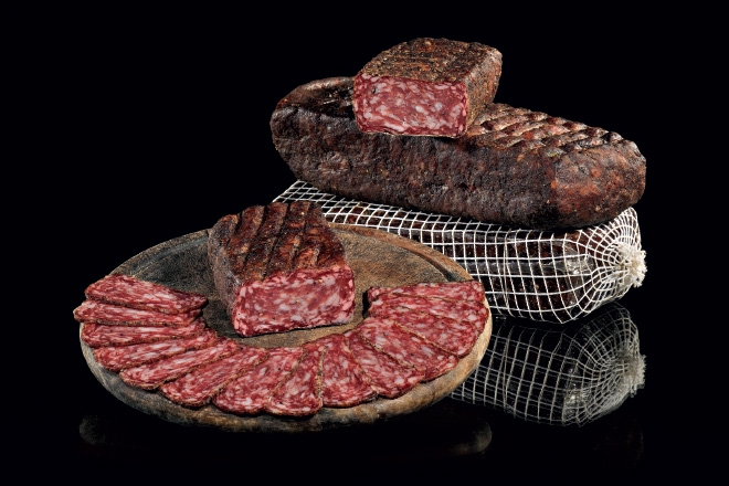 Pepita del Piave® is a tasty mixture of selected Italian pork, hand-worked and matured for approximately 40/60 days depending on the format. The processing of the meat takes place within 24/36 hours of slaughter to guarantee the product greater softness. Its peculiarity consists in the mixture of spices and aromas in which it is wrapped, which gives it a particular and unmistakable taste and aroma.