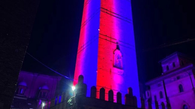 Bologna wins in Salerno and the Torre degli Asinelli turns red and blue
